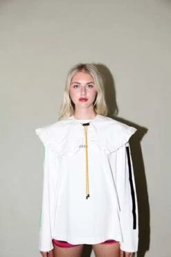 Designed and made in Los Angeles, USA — an oversized prairie collar from a cotton poplin with a reflective Paracord closure at front.
