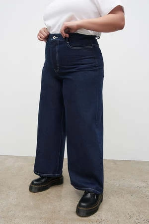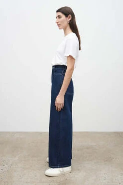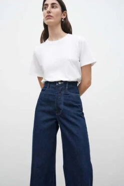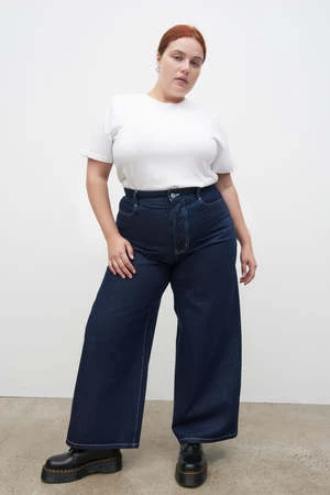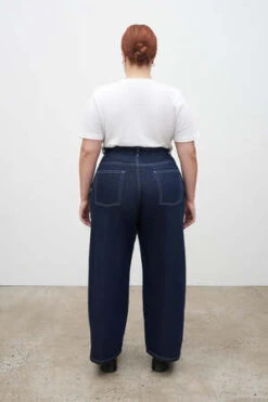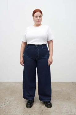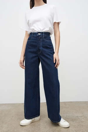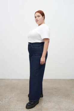 High-rise jeans with a straight wide leg, made from 100% certified Fairtrade mid-weight organic cotton denim. The jeans have front and back pockets, and are fastened with nickel-free tacks.