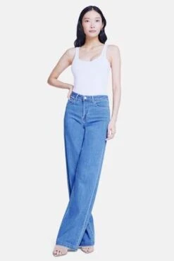 – A beautifully proportioned wide-leg jeans in medium-blue premium stretch denim