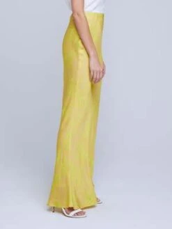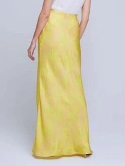 A stunning floor-length skirt offered in a lemon-yellow python print. Bias-cut, silk-like fabric falls in a subtle cling over the figure, enhancing and elongating the silhouette. Includes subtly flared hem and smooth elastic waist with no closures.