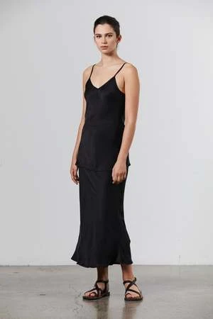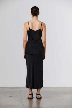 A simple camisole cut from luxurious sand-wash silk in classic black. We have cut our camisole a little bit longer so you can easily wear it out over our bias cut silk skirt or any of your favourite bottoms.