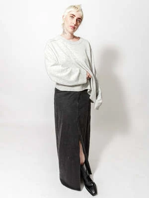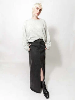 niesh and rebecca decided the no. 1 piece missing from their wardrobes was a denim maxi skirt; they wanted it to feel more rocker-cool than western, but still tie in some elements of classic americana denim.