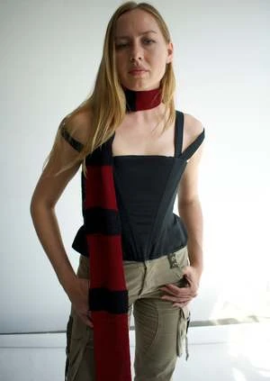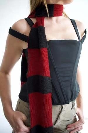 Louise Lyngh BjerregaardStriped Ribbed Knitted Scarf – Red/Black