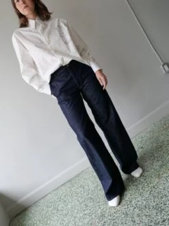 MM6 DENIM PANTS IN INDIGO. NON-STRETCH FOUR-POCKET DENIM JEANS WITH BELT LOOPS AND ZIP FLY. FEATURES PLAIN-WOVEN POCKETING LINING, CONTRAST STITCHING IN ORANGE, SIDE SLASH POCKETS, AND MM6 SIGNATURE WHITE STITCHING AT BACK. FULL LENGTH STRAIGHT LEG. SIDE SEAM MEASURES APPROXIMATELY FOURTY-FOUR INCHES. PLEASE NOTE THE MODEL’S MEASUREMENTS, AS THIS STYLE IS FITTING SMALL. MADE IN ITALY.