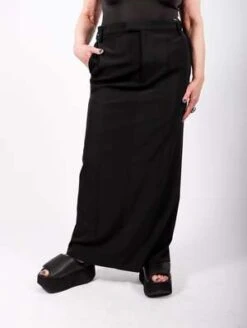 MM6 Maison Margiela’s Tailored Midi Skirt in Black is crafted from a satin-like polyester blend fabric for a luxurious high sheen finish. Cut to a straight fit, the skirt features a waistband with tailoring details and is split at the back for added movement. Showcase this timeless piece in any occasion.