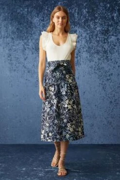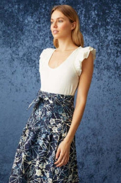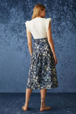 The Staten Skirt makes her debut this season in our bold and bohemian Batik Floral. Its newly streamlined drop-waist silhouette in structured, stretch cotton incorporates a flat yoke with flattering princess seams. An invisible side zip and crisp, detachable self-belt enhance the style, which falls into a gathered midi length. Youll be ready to host – or be hosted at – the best fte in town, by pairing with our crisp white Anna Top in Blanc.