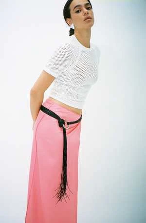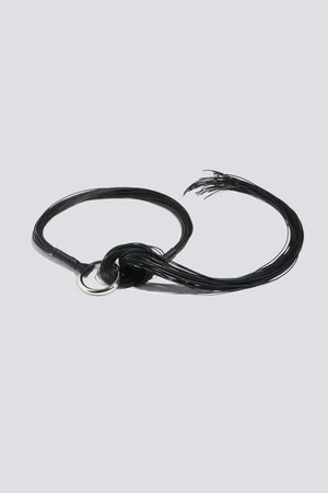 Genuine calf leather cords gathered and bound with a statement ring clasp for closure. This belt will transform your look into something truly sensational.