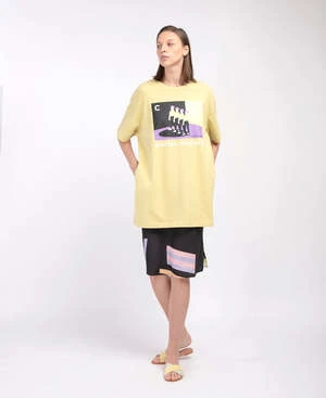 Oversized cotton t-shirt dress with side pockets. Crew neck collar.