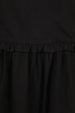 Midi-length. Square neckline. Wide cut. Frill detail.