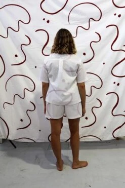 One of our most loved original Mosey Me designs, the Salento print makes a debut on our first ever line of sleepwear. Designed with comfort in mind, this set comes features a short sleeve boxy shirt and matching shorts with an elasticated waistband. A fun option for beach, bed or brunch. Also available in Wine, Blue and Clay.