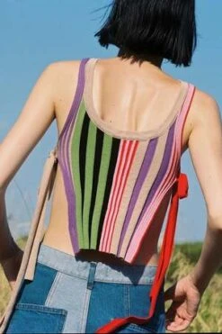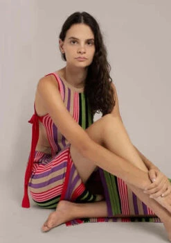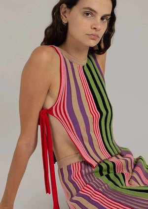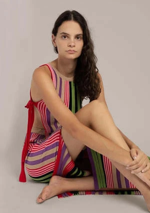 Ribbed knit top in a bright 6 colour combination. Crafted from 100% cotton yarn, this top is open on the sides with adjustable tie closure.