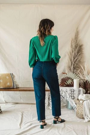 Classic high-rise side zip jeans based on 1950s women’s ranchwear. Front pockets. Clean back.