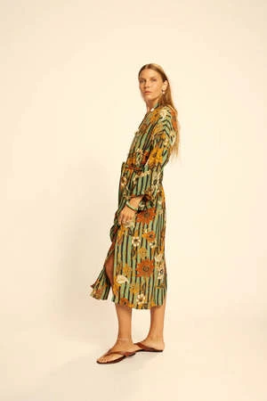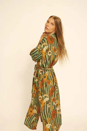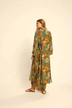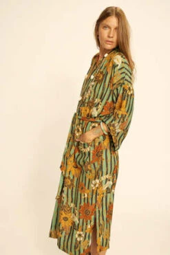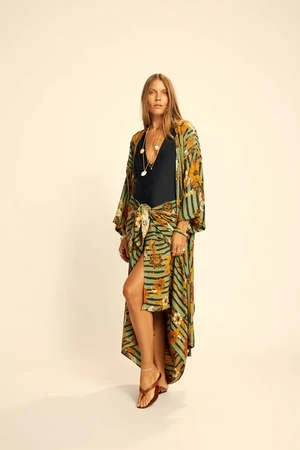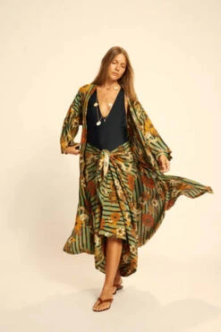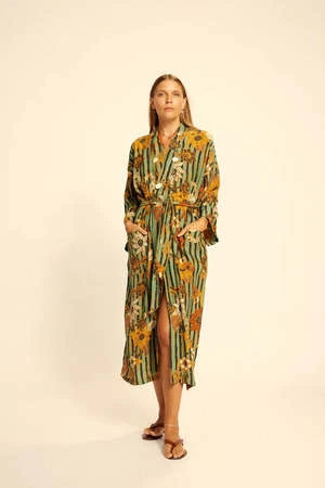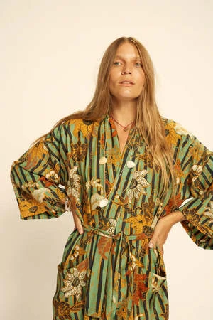 Japanese inspired robe with a drop shoulder and full sleeves.