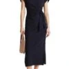 A beautiful, versatile dress for every season, Gina is understated glamor. Long sleeves give an elegant cover-up, and a delicate, hand-tied drawstring on the waist allows for casual styling. In a sophisticated below-the-knee length, the Gina dress is great with boots for every day, or heels for a night-time look. A feminine wrap neckline teamed with ruched shoulders completes the silhouette.