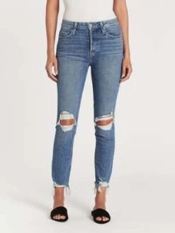 The Paige Hoxton Ankle Peg Jean in Novi Destructed are made from 98% Cotton 2% Elastane