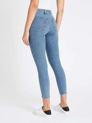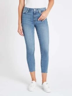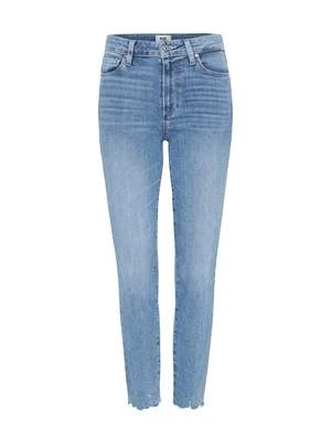 Kickstart your weekend in the Hoxton Crop Jean in Jukebox Distressed with Ragged Hem by Paige. Crafted from a soft cotton blend, these high rise cropped skinny jeans feature a casual light wash, a classic 5 pocket design and is finished with a raw jagged hemline. Team with leather slides and simple tee for the ultimate weekend ready look.