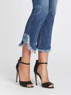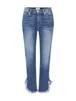 The Paige Hoxton Straight Ankle Jean in Norfolk are the perfect classic jeans with a cool girl twist to add to your wardrobe. Constructed from a cotton blend fabric these straight leg, high rise jeans feature a single button zip fly closure, matte off white hardware, subtle fading through the leg and are designed to have a cropped finish with a curved, frayed raw hemline.