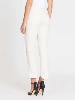 It’s all about soft neutrals this season and the Paige Denim Hoxton Straight Ankle Jean in Cream/Pink is the perfect way to rock this trend. Constructed from a cream colour denim these high rise straight jeans feature a single button zip fly closure with silver hardware, front and back pockets, an ultra cool frayed hem and have been finished with contrast pink stitching.