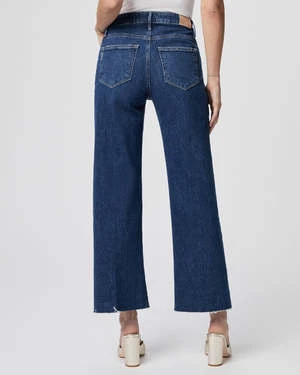 This sleek wide leg is designed with a high-rise, a flattering bow leg and an easy cropped ankle length inseam that can be paired with any shoe heel height. This must-have pair is crafted in our customer-favorite PAIGE VINTAGE denim in a classic medium wash with a raw hem.