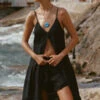Fits true to size. Kelani is 5’7″ and wears the size XS.