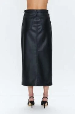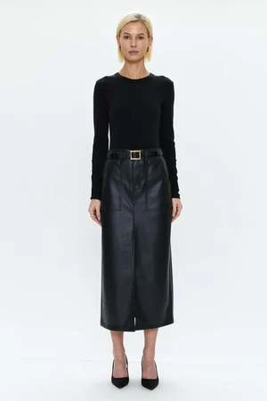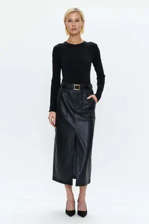 A nod to the of-the-moment midi skirt, the latest version of Alice is created in a buttery soft alt leather fabric. With the same polished length and front slit as its denim counterpart, it brings a utililty update with patch pockets on the front.