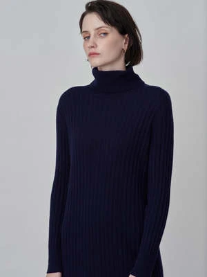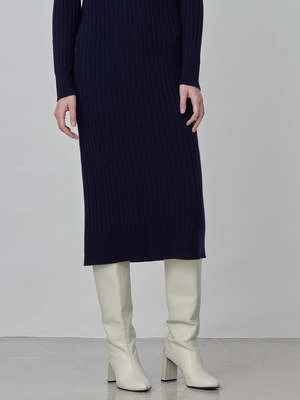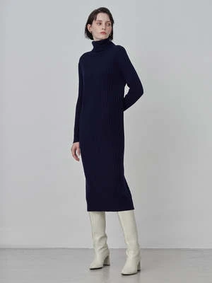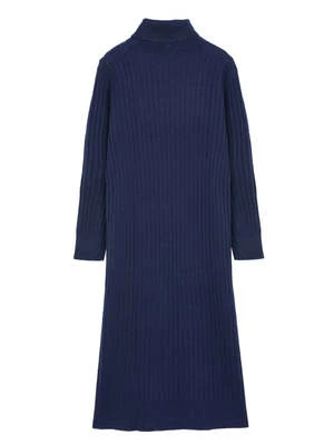 Crafted from a more sustainable 100% Cashmere, this straight-fit rib knit maxi dress is designed to fall loosely over the body.