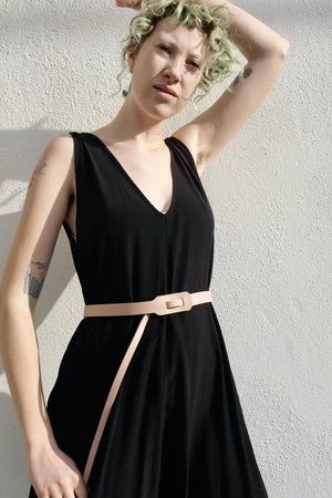 This skinny leather belt is designed with a threaded loop closure to cinch garments in at the waist. Excess length can be tied or worn loose.