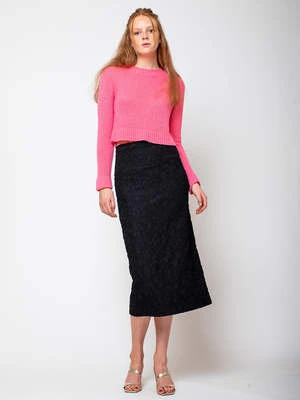 High-waisted pencil skirt in stretch flower fabric. Midi length, side zipper and back vent.