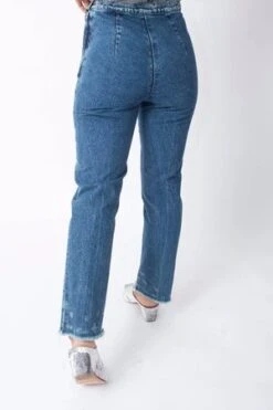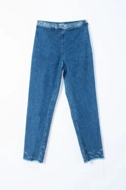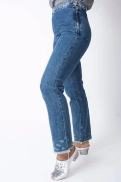 The Fletcher Jean from Rachel Comey is a high-rise, slim-fit, straight-leg style in Classic Indigo Blue. Featuring a bleached waistband and one of those details that is a short girl’s BFF: the raw hem.