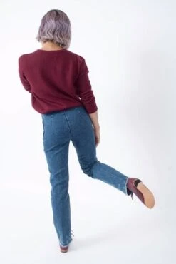 The Fletcher Jean from Rachel Comey is a high-rise, slim-fit, straight-leg style in Classic Indigo Blue. Featuring a bleached waistband and one of those details that is a short girl’s BFF: the raw hem.