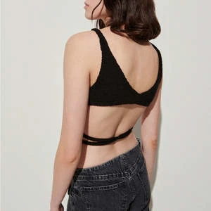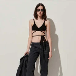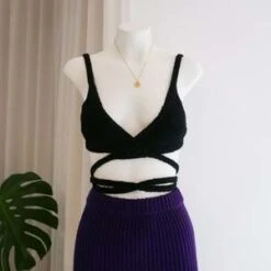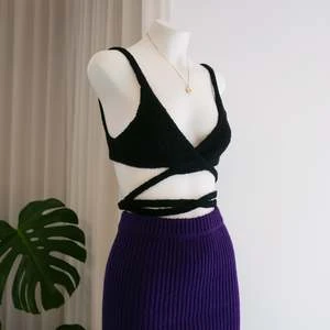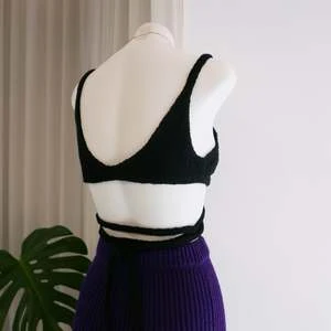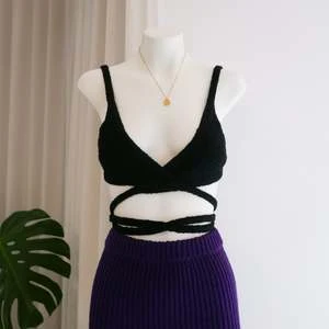 Triangle bralette with wraparound tie, in soft, breathable, textured knit. It fits many sizes due to the knit’s adaptable nature. Perfect to be worn on its own or to layer on top or under other garments.