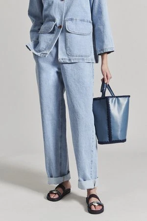 A mid-rise, flat front style with a billowy long leg, the Vento Pant has large utility back pockets and front slash pockets. Wear long or rolled twice at the hem.