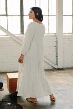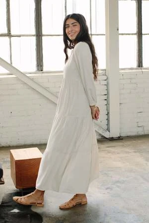 The Alice dress is a new favorite! The scoop neck, full long sleeves, and tiers that fall away from the body make this dress a flattering and wearable must-have! Wear it year round with sneakers or sandals, boots or heels!