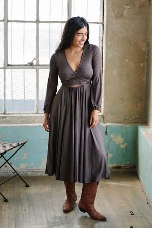 A classic wrap dress with a twist, the Marston features balloon sleeves with elastic detail at the wrists, and a full flowy skirt. This versatile piece can worn with more or less coverage, your mood suits.