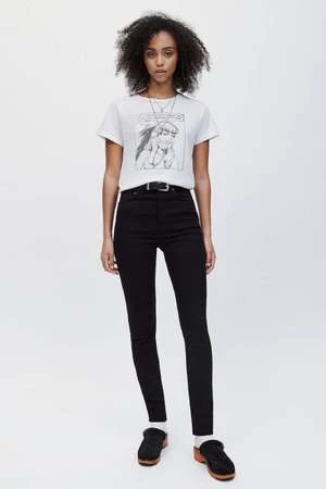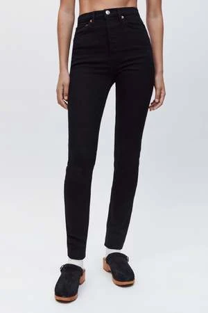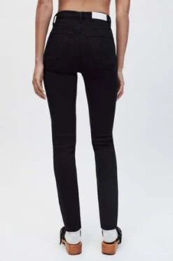 The Extra Stretch 90s High Rise Ankle Crop in Noir is Re/Done’s take on the classic 90s-inspired skinny with a cropped inseam. Features a saturated black wash reminiscent of deadstock denim, a classic button fly, finished hem, and is an extra stretch denim.