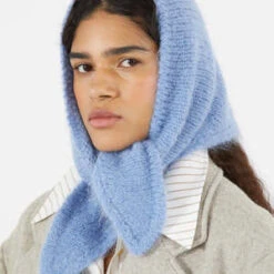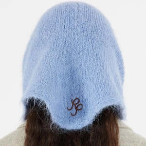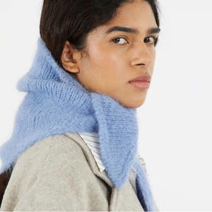 Soft scarf knitted in a triangle shape that features an embroidered RP logo detail.