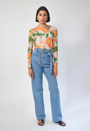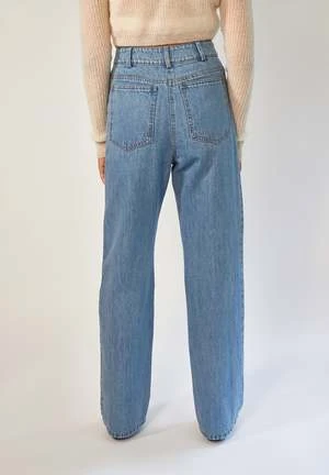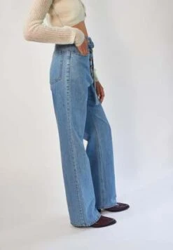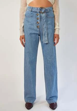 Rejina Pyo gives denim a directional update with the slightly flared ‘Emily’ Jeans. In Organic Cotton, light blue, they are a relaxed ankle length style with a flattering belt detail at the waist and matching medium sized front buttons.
