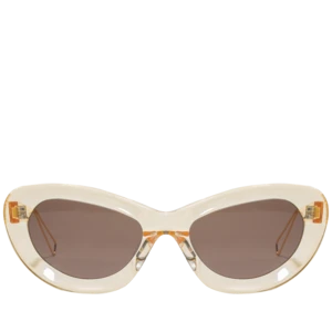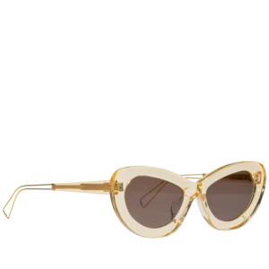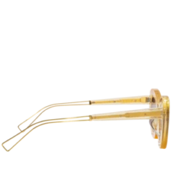 In collaboration with Projekt Produkt. Pebble frame, yellow frames with pink lens and gold temple.