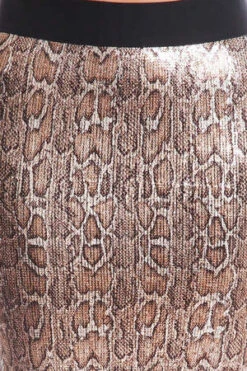 A shimmering exotic python print mini skirt made for your night to shine. Color contrasting waistband, single-button closure with a zip fly and back slit. Style with the matching Roseanna Seven Python T-Shirt for a complete showstopping look.