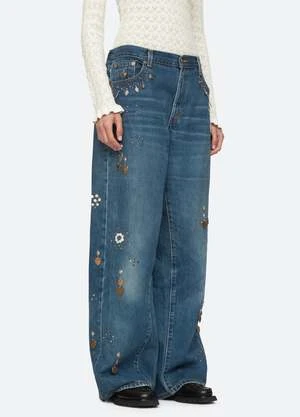 The Betina beaded jeans are embellished with heart and beaded accents throughout. Due to the nature of hand embellishment, there will be variation in beaded placement on each style.