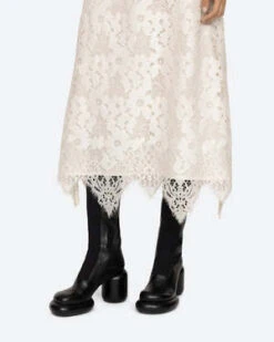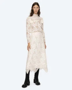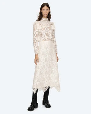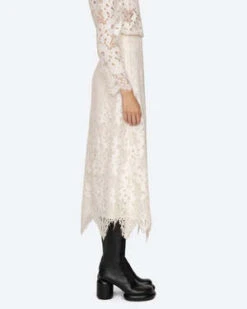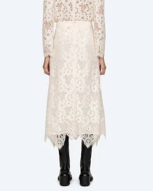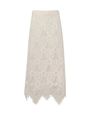 The Dalia Skirt in Ivory by Sea New York a delicate lace skirt featuring a scalloped hemline.