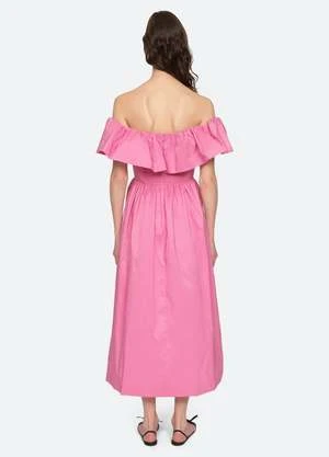 The Diana taffeta off the shoulder dress features an oversized off the shoulder ruffle and full skirt.