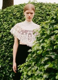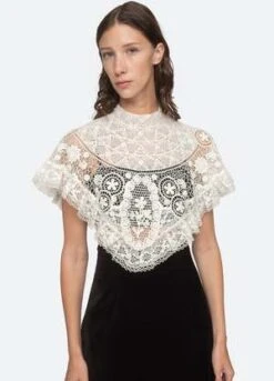 – lace crochet cape-button back fastening