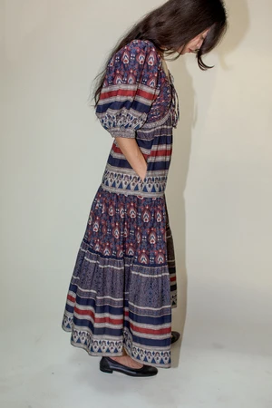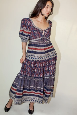 Sea NY Tasha Print Short Sleeve Tiered Dress in Navy
