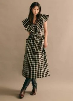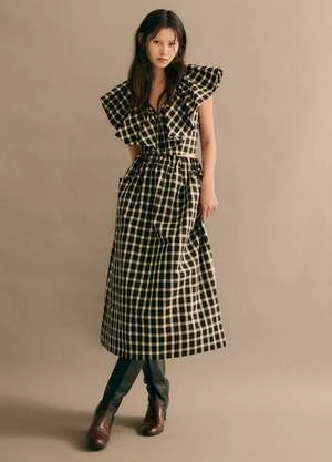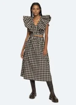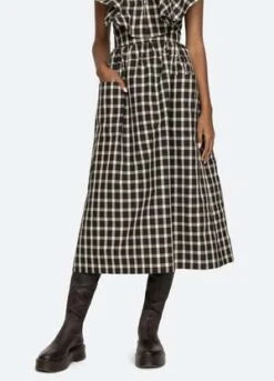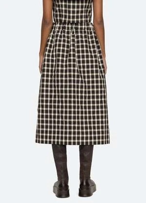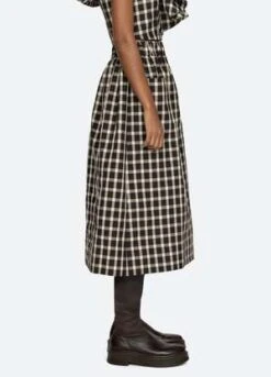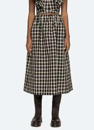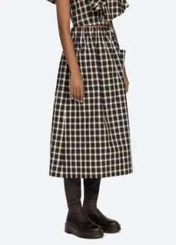 The Valeria check print skirt features an elasticated waist, A-line silhouette and oversized front pockets.