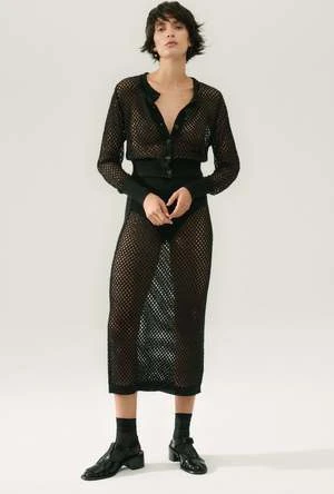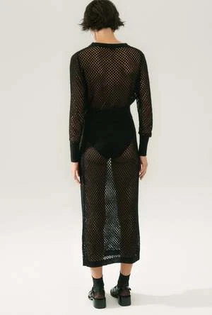 A relaxed take on the Knit Straight Skirt, the most flattering maxi you’ll ever own. Crocheted from a silk cotton blend and featuring a thick elasticated waistband creating a comfortable and effortless fit. The high-waisted positioning makes it a perfect match for our Crochet Cropped Cardigan.