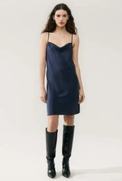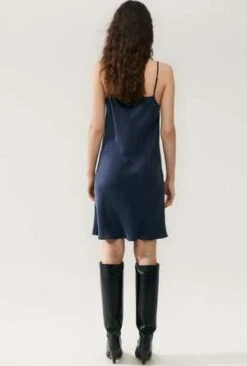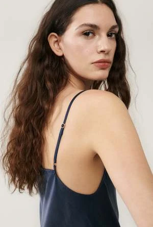 Silk Laundry dress crafted in 100% silk with adjustable straps and a straight neckline. Cut to a fluid silhouette with a mid-length hemline.