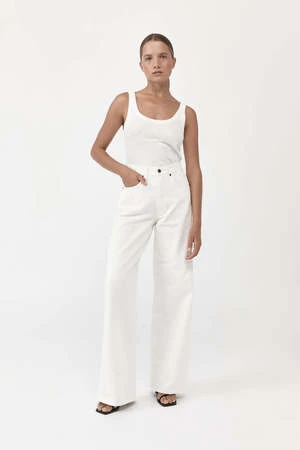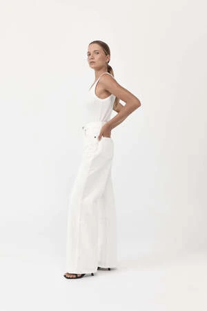 Inspired by the loose and oversized shapes of 90s styling, The Mid Rise Wide Leg Jeans boast a wide-leg and exaggerated silhouette, button-fastening at the front, front/back pockets and leather label patch. Comfortable and slouchy without sacrificing St. Agnis polished aesthetic, the Mid Rise Wide Leg Jeans lend a casual air to the capsule wardrobe. Pair it with our signature tees and flatforms for a classic, off-duty ensemble.