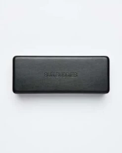 Thick square cat eye frame in a solid green colorway, handmade of Italian Mazzucchelli acetate. Grey optical class 1 lenses with 100% UV protection and a seven bar hinge with two visible rivets on the temple. Comes in a glossy paperboard box and a faux leather case. Cleaning cloth included.
