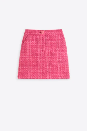 -Plain tweed short skirt -Zippered buttoned closing in the front -Two side pockets -Lined and made from recycled polyester The length skirt is 18,11in for a size T1.Choose your usual size. Between two sizes, choose the larger one.